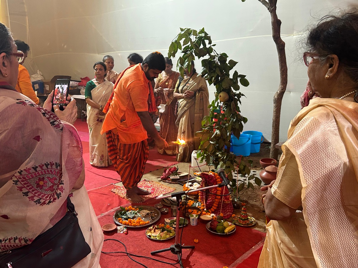 The rituals themselves are woven with emotion. On Shashthi, when the goddess is unveiled, the excitement is palpable. Agomoni songs fill the air, announcing her arrival. On Saptami, the nabapatrika a symbolic form of the goddess tied in banana leaves is bathed at dawn. On Ashtami, the fragrance of dhunofills the pandals as women dance in devotion during dhunuchi naach, their bodies swaying with incense burners. And on Dashami, as the idols are prepared for immersion, women playfully smear vermilion on each other in the ritual ofsindoor khela. Yet beneath the playfulness lies poignancy; the recognition that the goddess must now leave, just as a married daughter leaves her parents’ home. The cry of “Aasche bochhor abar hobe” (she will come again next year) captures both the sorrow of parting and the promise of return.